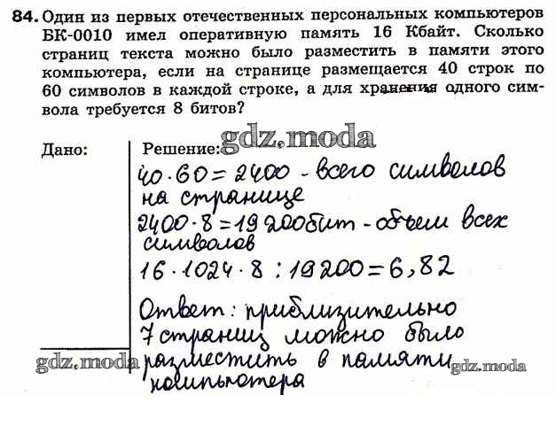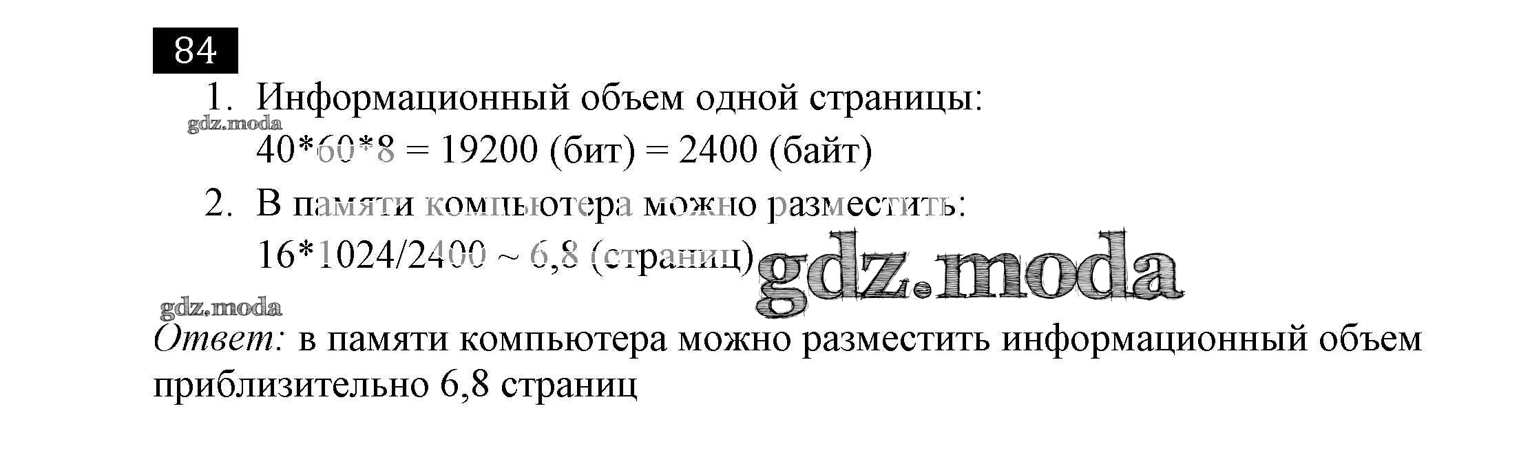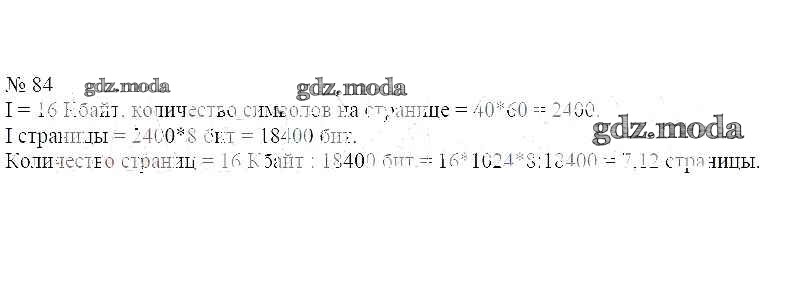 ГДЗ решение к заданию № 84 Информатика 7 класс рабочая тетрадь Босова Л.Л. Бином 2018 ФГОС бесплатно на гдз.мода!