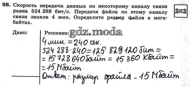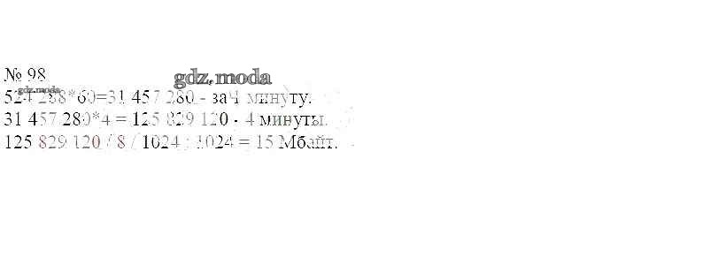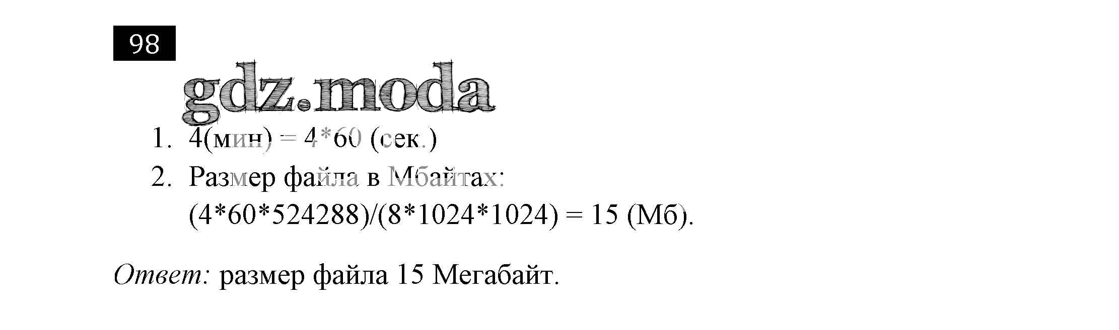 ГДЗ решение к заданию № 98 Информатика 7 класс рабочая тетрадь Босова Л.Л. Бином 2018 ФГОС бесплатно на гдз.мода!