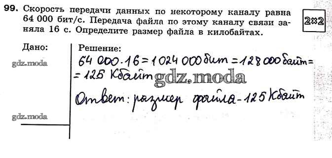 ГДЗ решение к заданию № 99 Информатика 7 класс рабочая тетрадь Босова Л.Л. Бином 2018 ФГОС бесплатно на гдз.мода!