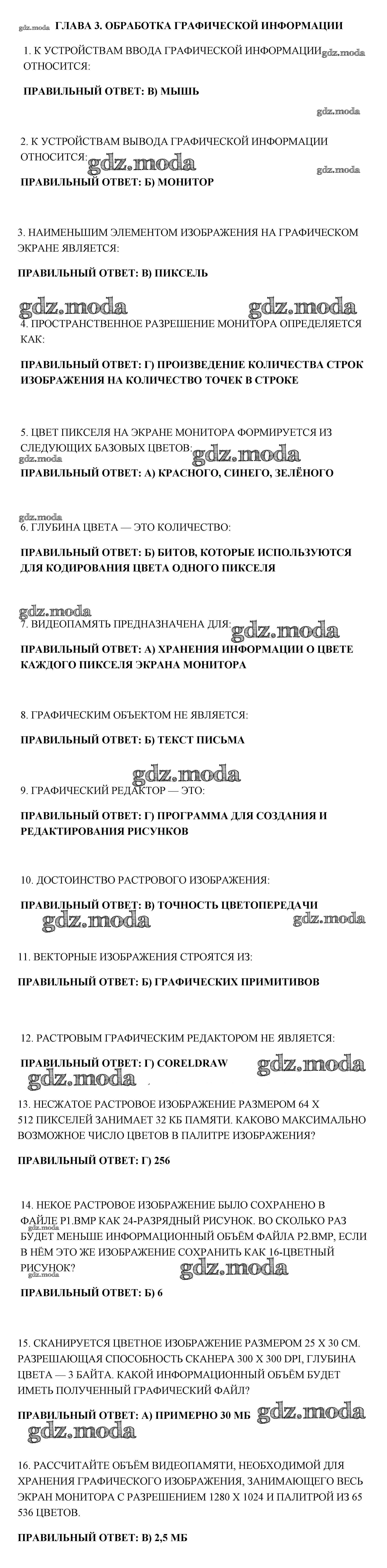 ОТВЕТ на задание № 1-16 Учебник по Информатике 7 класс Босова