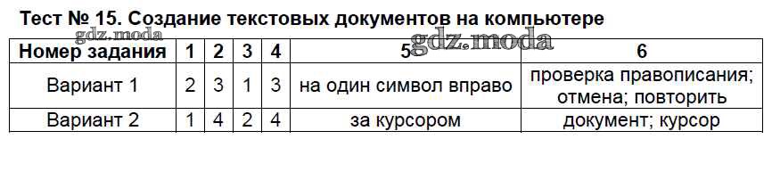 ГДЗ решение к заданию № Тест №15. Создание текстовых документов на компьютере Информатика 7 класс контрольно-измерительные материалы Масленикова О.Н. ВАКО 2017 ФГОС бесплатно на гдз.мода!