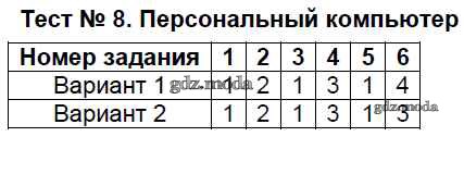 ГДЗ решение к заданию № Тест №8. Персональный компьютер Информатика 7 класс контрольно-измерительные материалы Масленикова О.Н. ВАКО 2017 ФГОС бесплатно на гдз.мода!