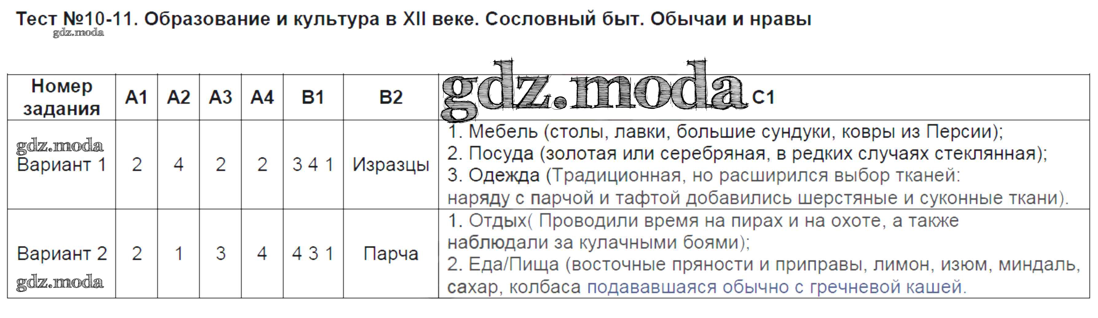 ГДЗ решение к заданию № 10-11 История 7 класс КИМ Смирнов Ю.А. Экзамен 2015 ФГОС бесплатно на гдз.мода!