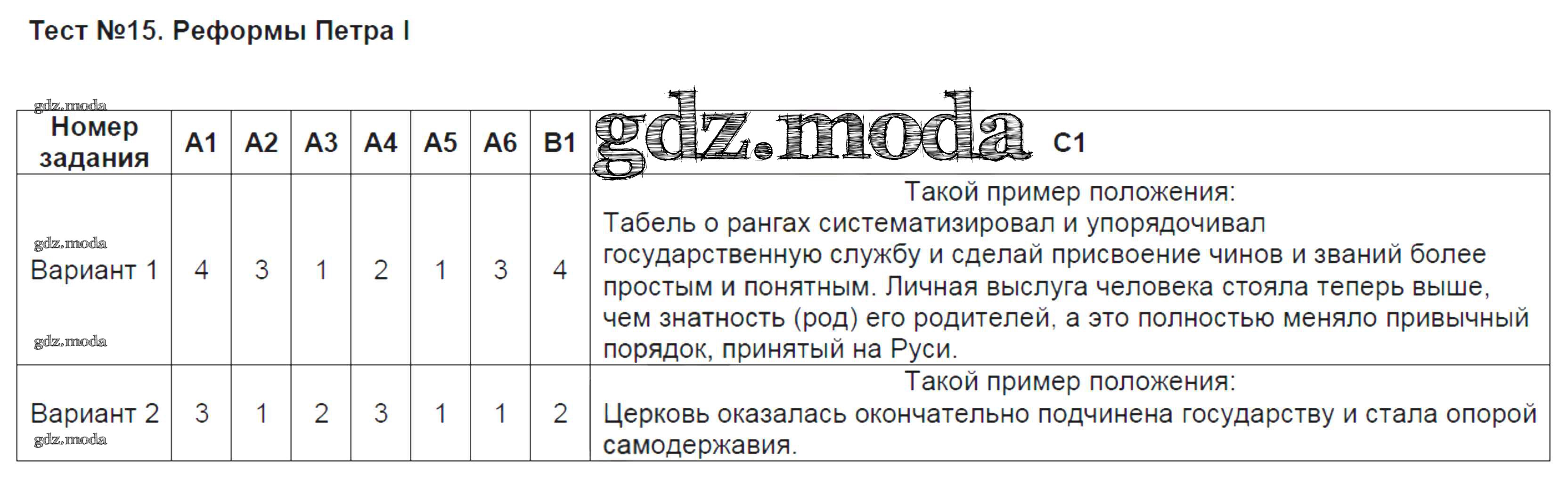 ГДЗ решение к заданию № 15 История 7 класс КИМ Смирнов Ю.А. Экзамен 2015 ФГОС бесплатно на гдз.мода!