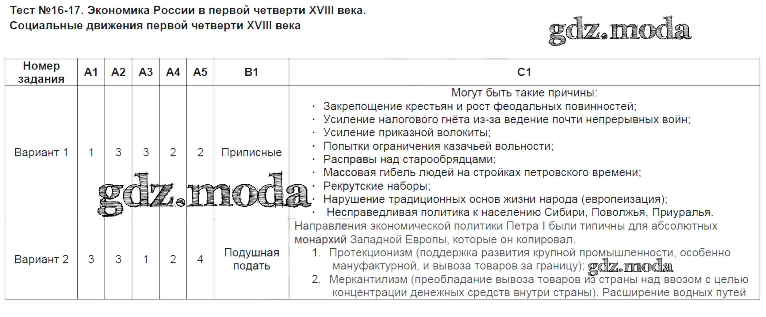 ГДЗ решение к заданию № 16-17 История 7 класс КИМ Смирнов Ю.А. Экзамен 2015 ФГОС бесплатно на гдз.мода!