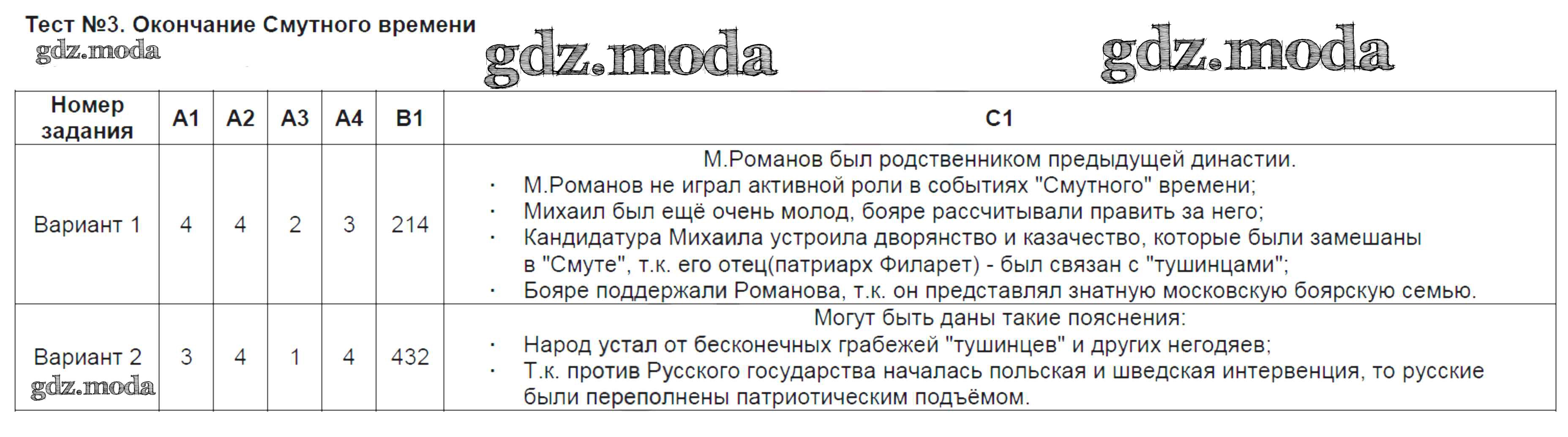 ОТВЕТ на задание № 3 Контрольные измерительные материалы по Истории 7 класс Смирнов