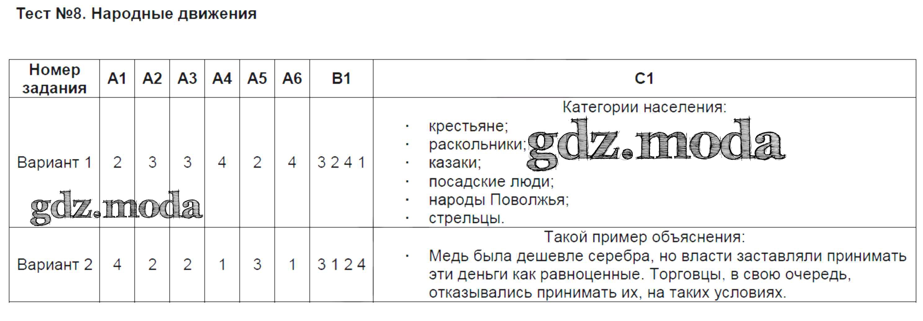 ГДЗ решение к заданию № 8 История 7 класс КИМ Смирнов Ю.А. Экзамен 2015 ФГОС бесплатно на гдз.мода!
