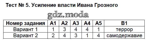 ГДЗ решение к заданию № 5 История 7 класс История России КИМ Волкова К.В. ВАКО 2017 ФГОС бесплатно на гдз.мода!