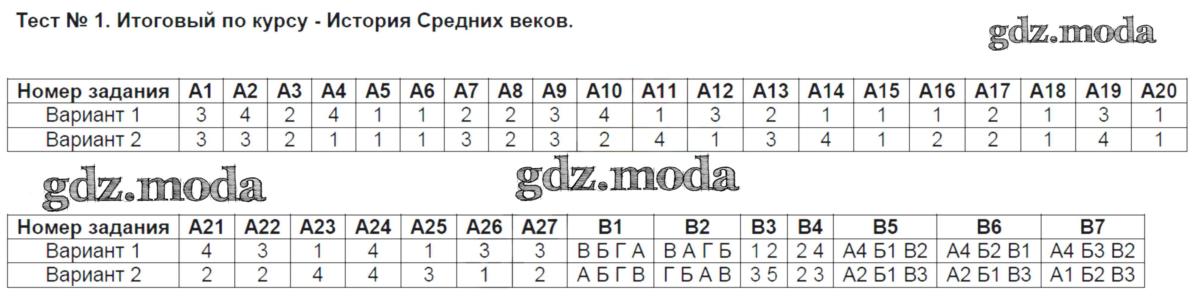 ОТВЕТ на задание № 1 Контрольно-измерительные материалы (КИМ) по Истории 7 класс Волкова