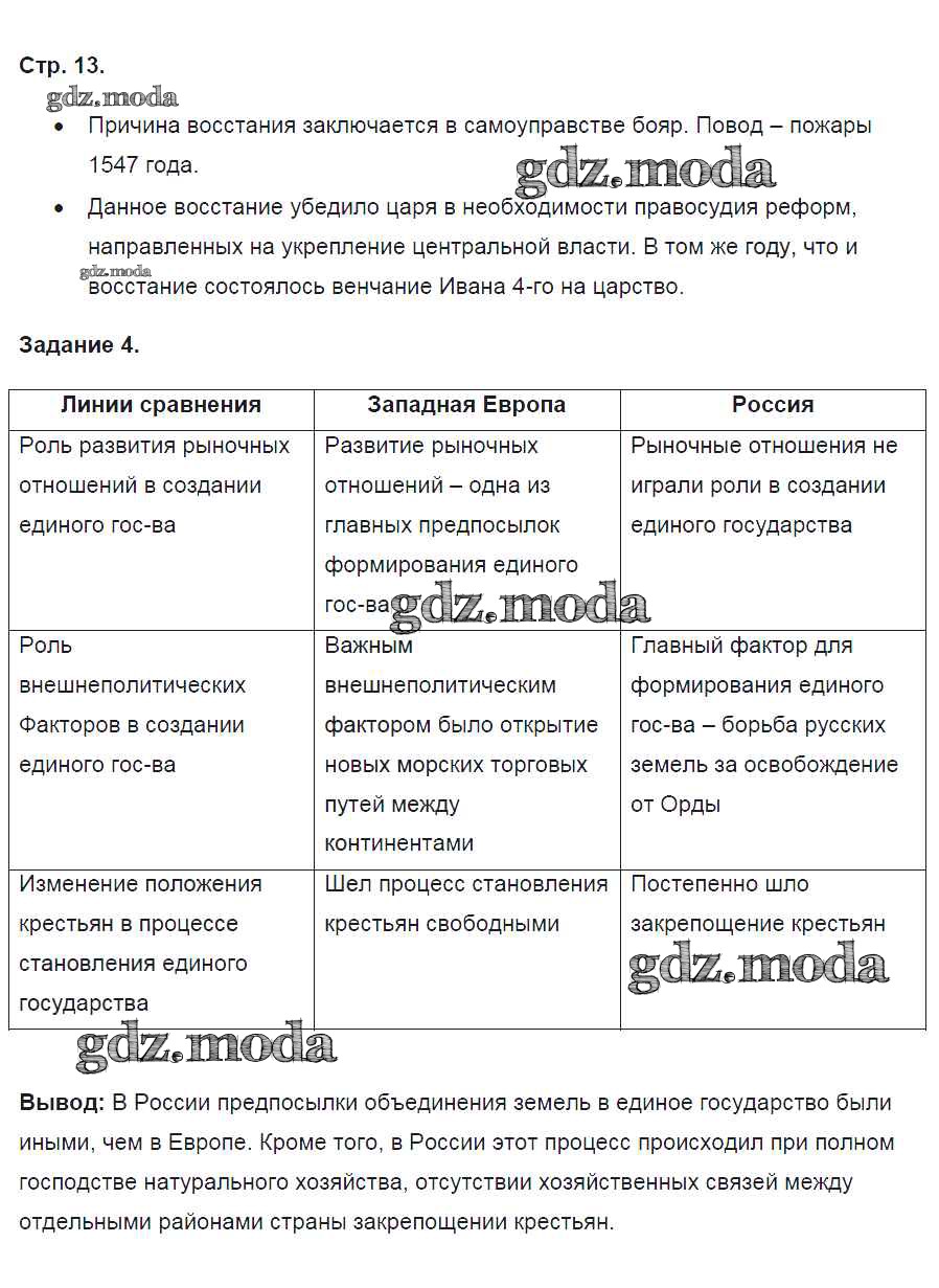 ГДЗ решение к заданию № 13 История России 7 класс контрольные работы Артасов И.А. Просвещение 2016 ФГОС бесплатно на гдз.мода!