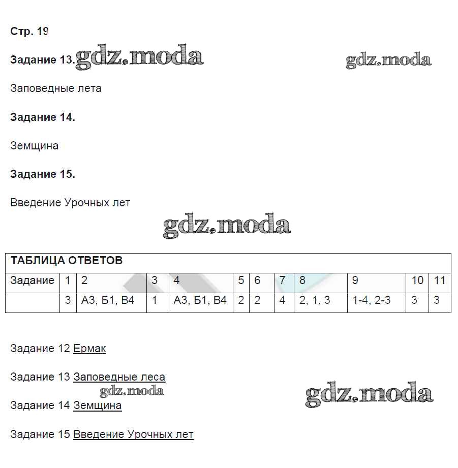 ГДЗ решение к заданию № 19 История России 7 класс контрольные работы Артасов И.А. Просвещение 2016 ФГОС бесплатно на гдз.мода!