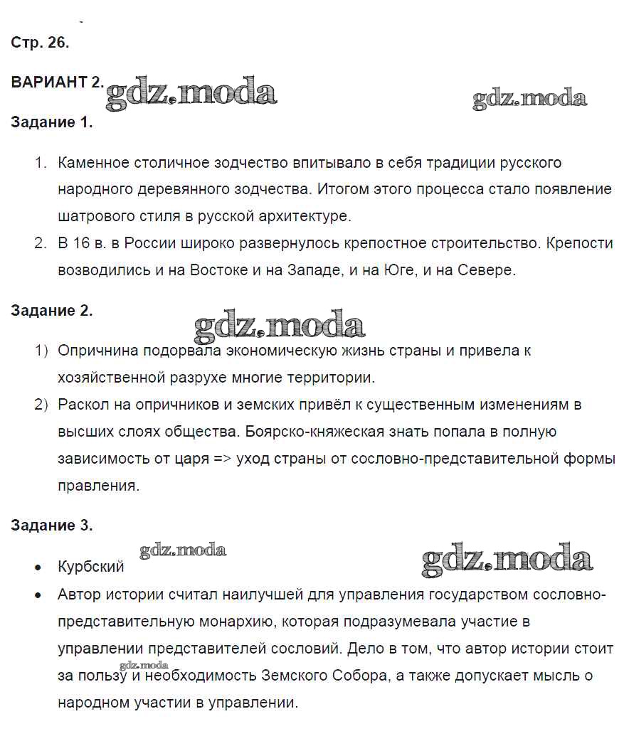 ГДЗ решение к заданию № 26 История России 7 класс контрольные работы Артасов И.А. Просвещение 2016 ФГОС бесплатно на гдз.мода!