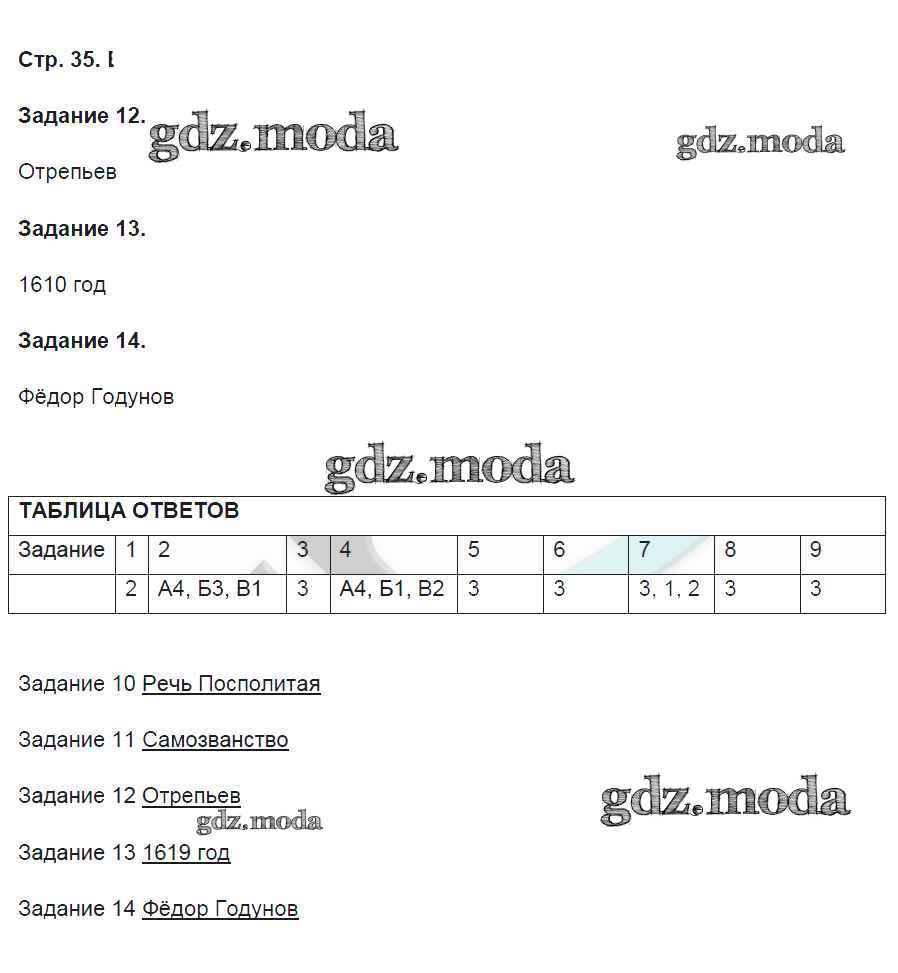 ГДЗ решение к заданию № 35 История России 7 класс контрольные работы Артасов И.А. Просвещение 2016 ФГОС бесплатно на гдз.мода!