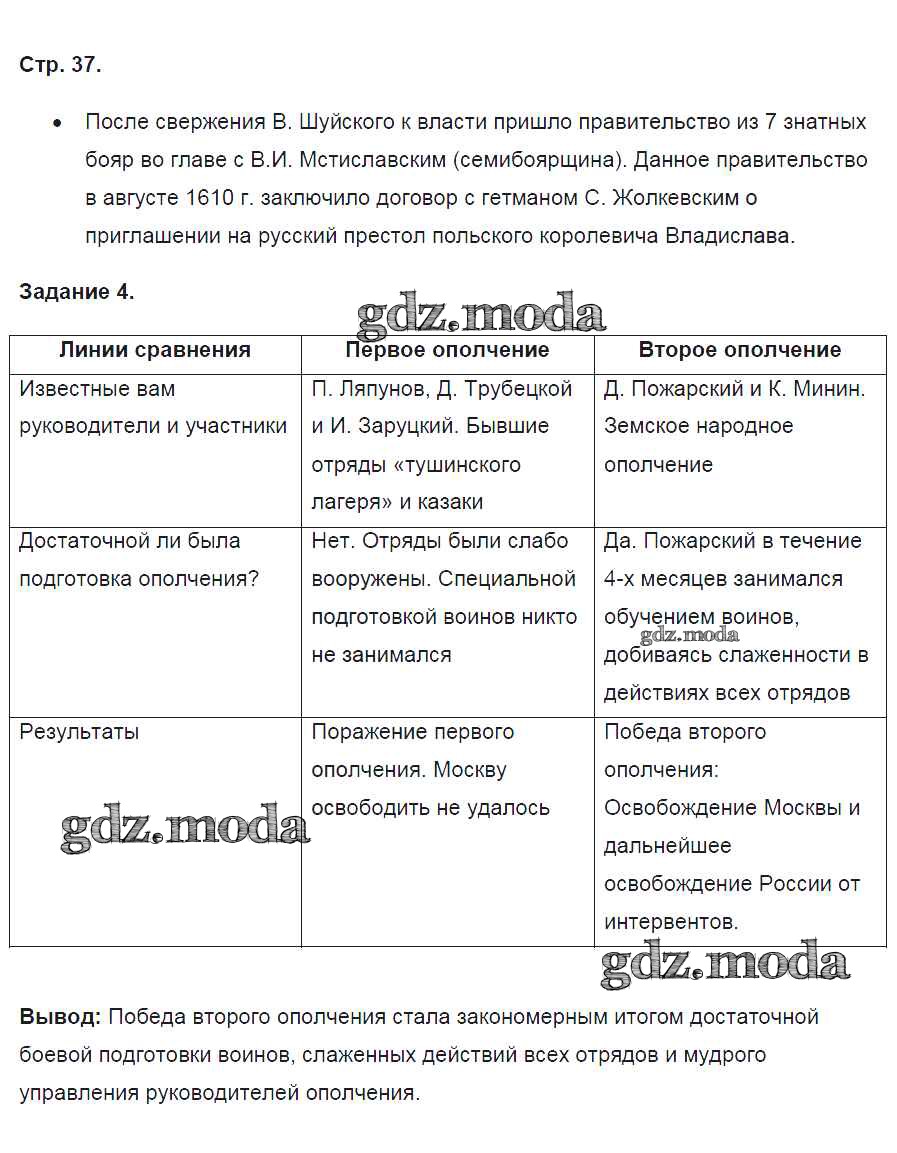 ГДЗ решение к заданию № 37 История России 7 класс контрольные работы Артасов И.А. Просвещение 2016 ФГОС бесплатно на гдз.мода!