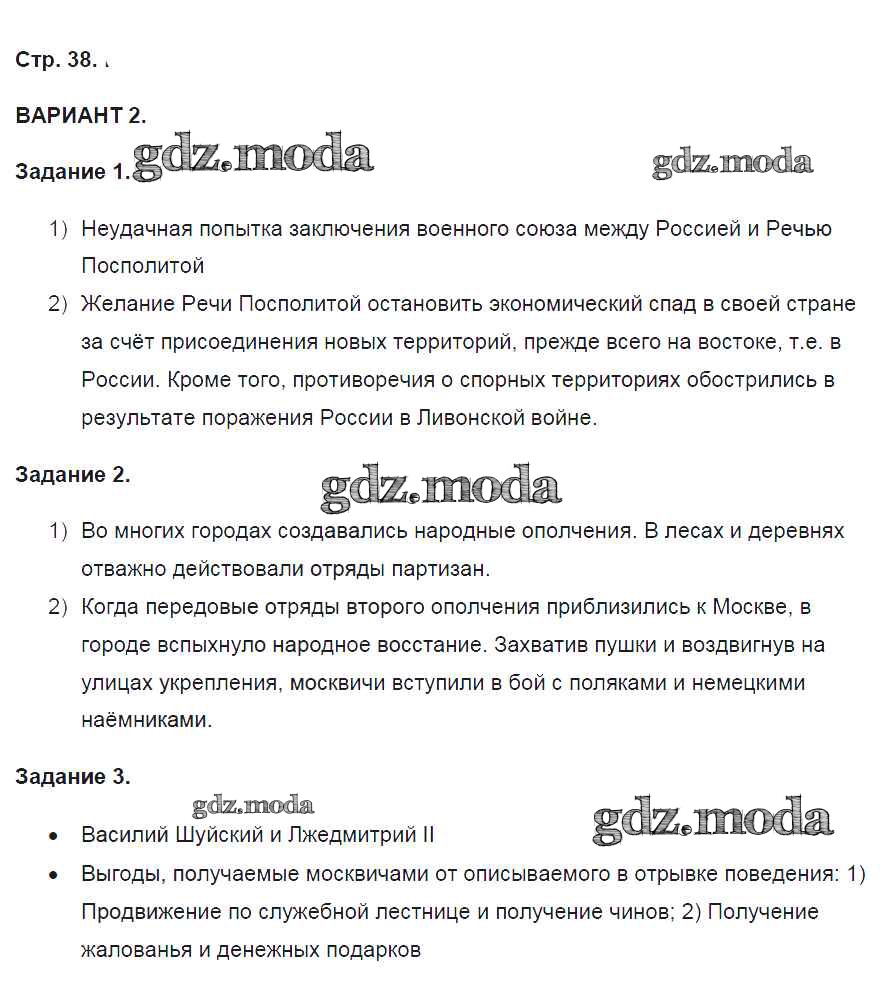ГДЗ решение к заданию № 38 История России 7 класс контрольные работы Артасов И.А. Просвещение 2016 ФГОС бесплатно на гдз.мода!