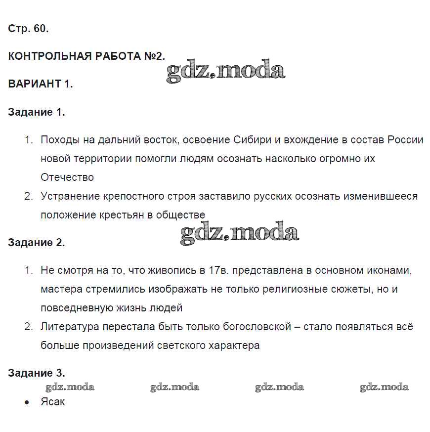 ГДЗ решение к заданию № 60 История России 7 класс контрольные работы Артасов И.А. Просвещение 2016 ФГОС бесплатно на гдз.мода!