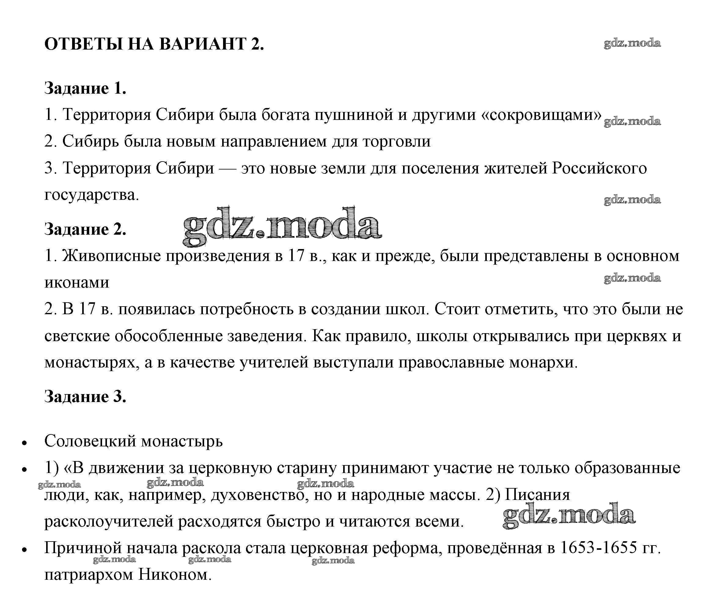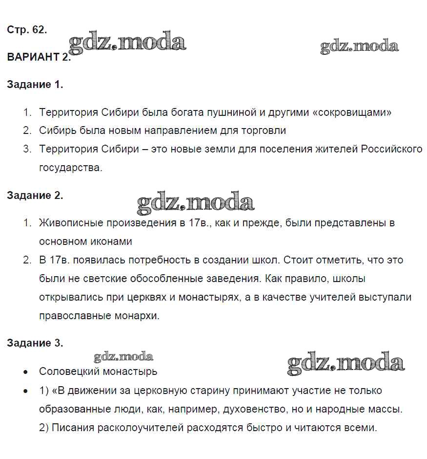 ГДЗ решение к заданию № 62 История России 7 класс контрольные работы Артасов И.А. Просвещение 2016 ФГОС бесплатно на гдз.мода!