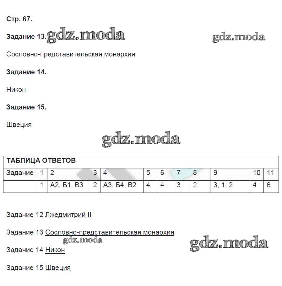 ГДЗ решение к заданию № 67 История России 7 класс контрольные работы Артасов И.А. Просвещение 2016 ФГОС бесплатно на гдз.мода!