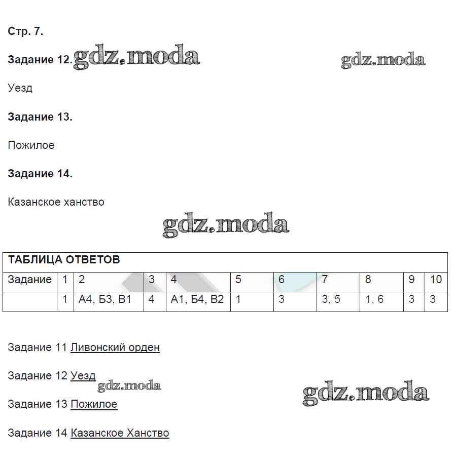 ГДЗ решение к заданию № 7 История России 7 класс контрольные работы Артасов И.А. Просвещение 2016 ФГОС бесплатно на гдз.мода!