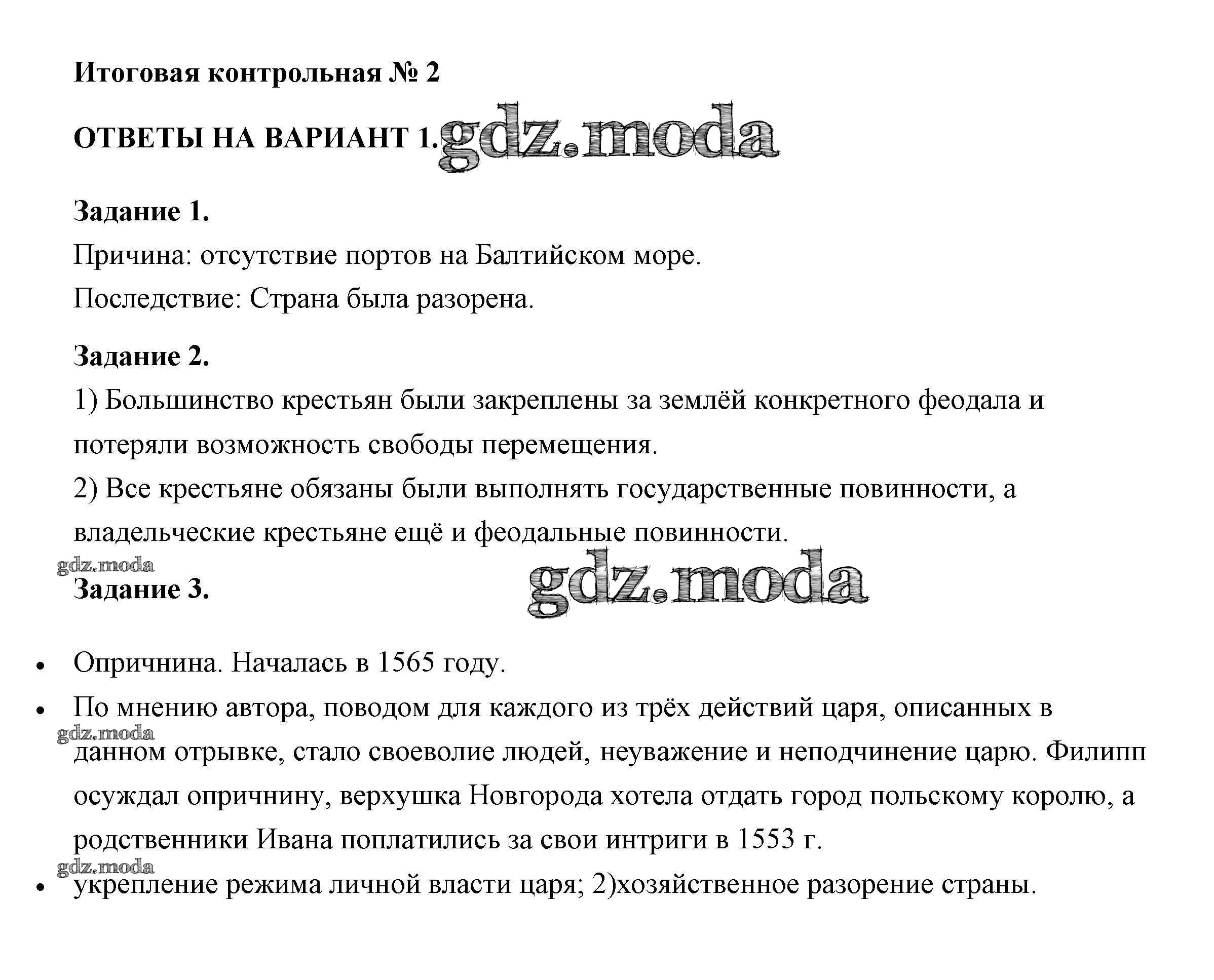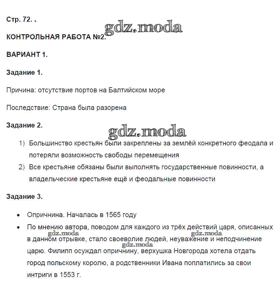 ГДЗ решение к заданию № 72 История России 7 класс контрольные работы Артасов И.А. Просвещение 2016 ФГОС бесплатно на гдз.мода!
