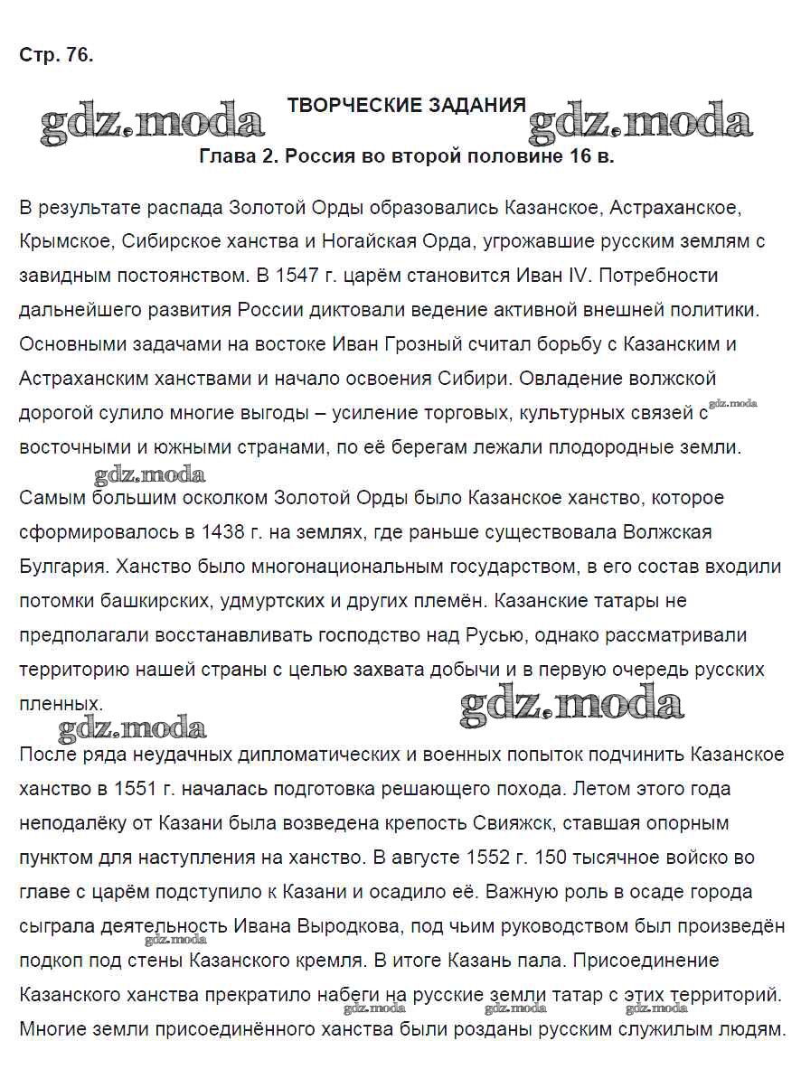 ГДЗ решение к заданию № 76 История России 7 класс контрольные работы Артасов И.А. Просвещение 2016 ФГОС бесплатно на гдз.мода!