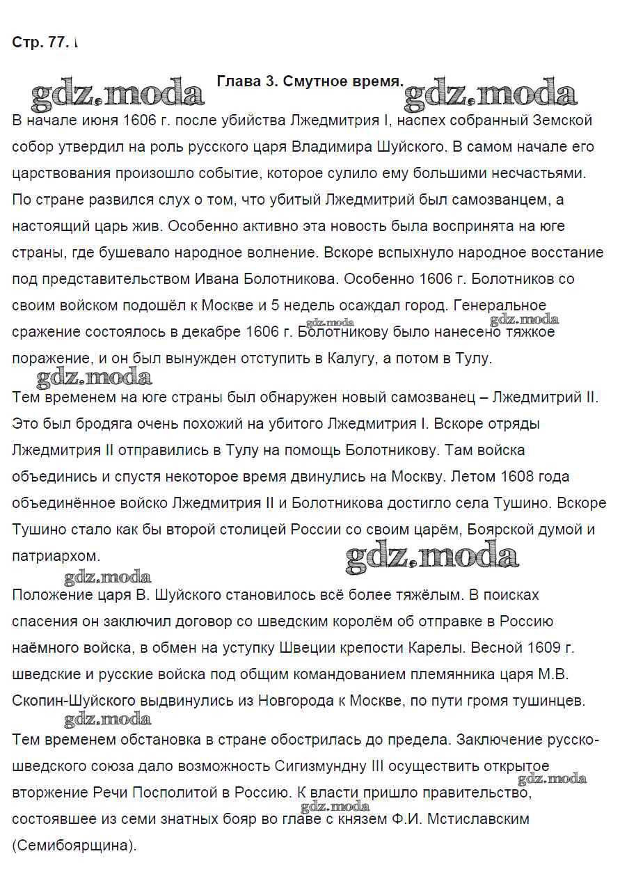 ГДЗ решение к заданию № 77 История России 7 класс контрольные работы Артасов И.А. Просвещение 2016 ФГОС бесплатно на гдз.мода!
