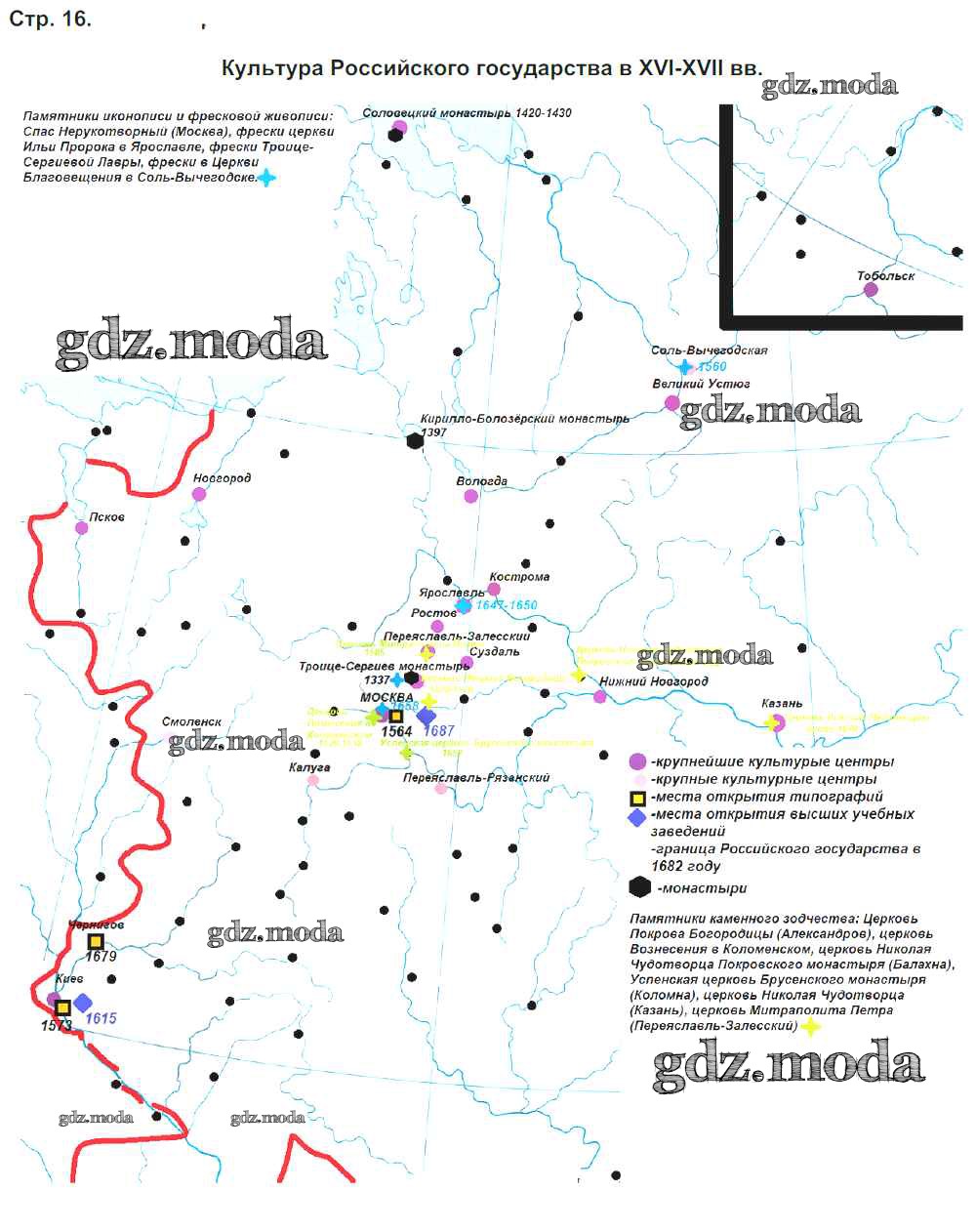 ГДЗ решение к заданию № 16 История 7 класс контурные карты Тороп В.В. Дрофа 2020 ФГОС бесплатно на гдз.мода!