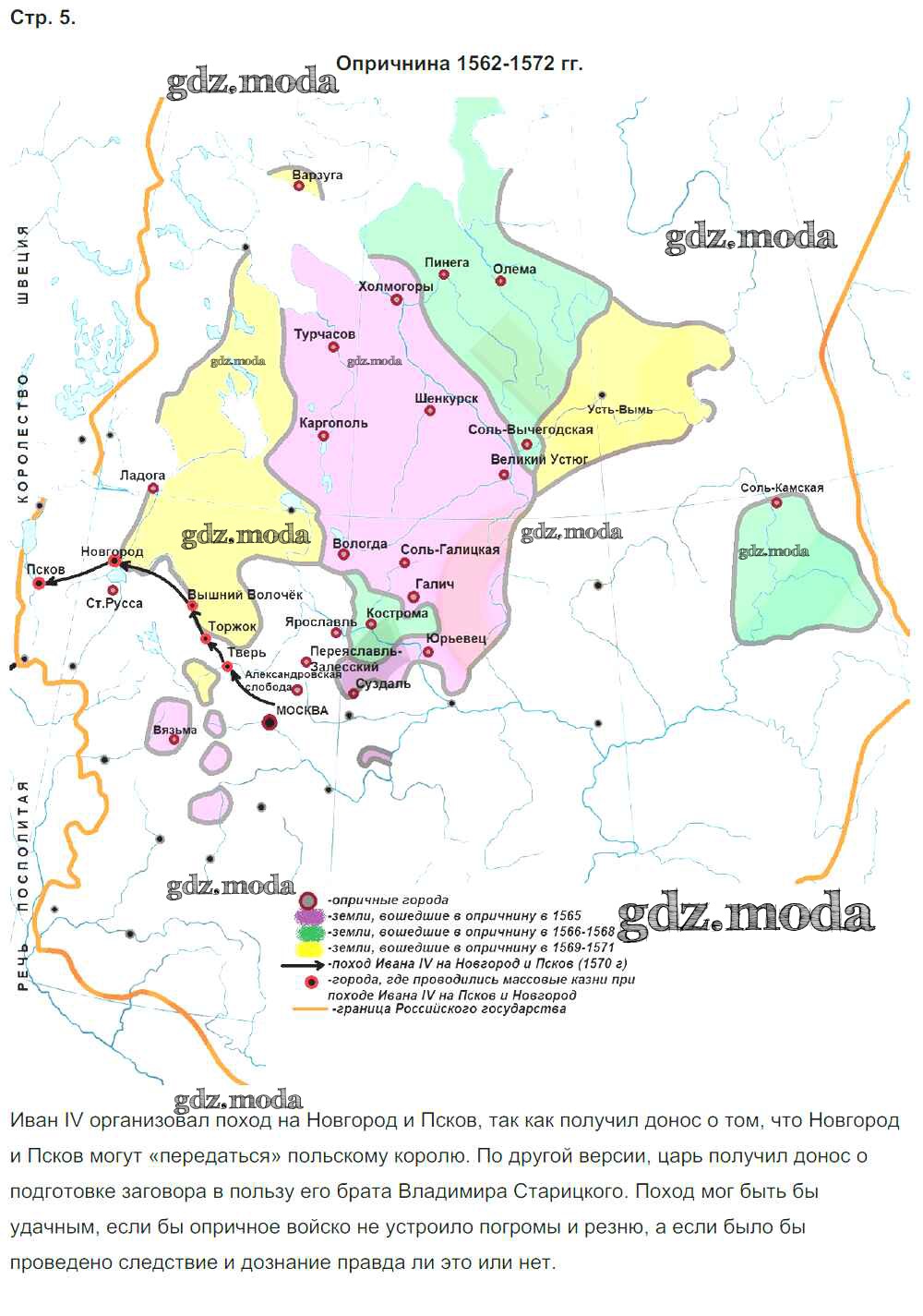 ГДЗ решение к заданию № 5 История 7 класс контурные карты Тороп В.В. Дрофа 2020 ФГОС бесплатно на гдз.мода!