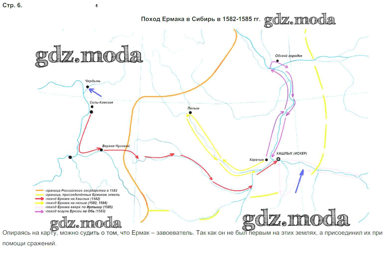ГДЗ решение к заданию № 6 История 7 класс контурные карты Тороп В.В. Дрофа 2020 ФГОС бесплатно на гдз.мода!