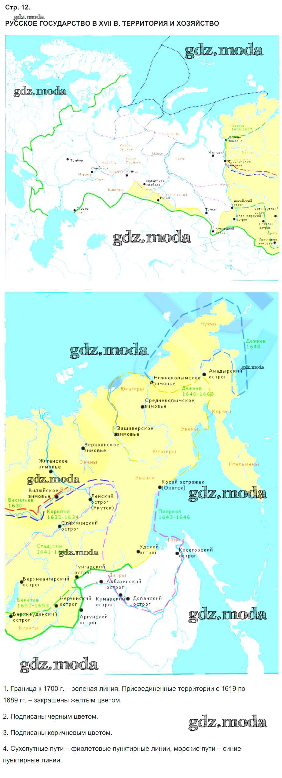 ГДЗ решение к заданию № 12 История 7 класс контурные карты Лукин П.В. Русское слово 2017 ФГОС бесплатно на гдз.мода!