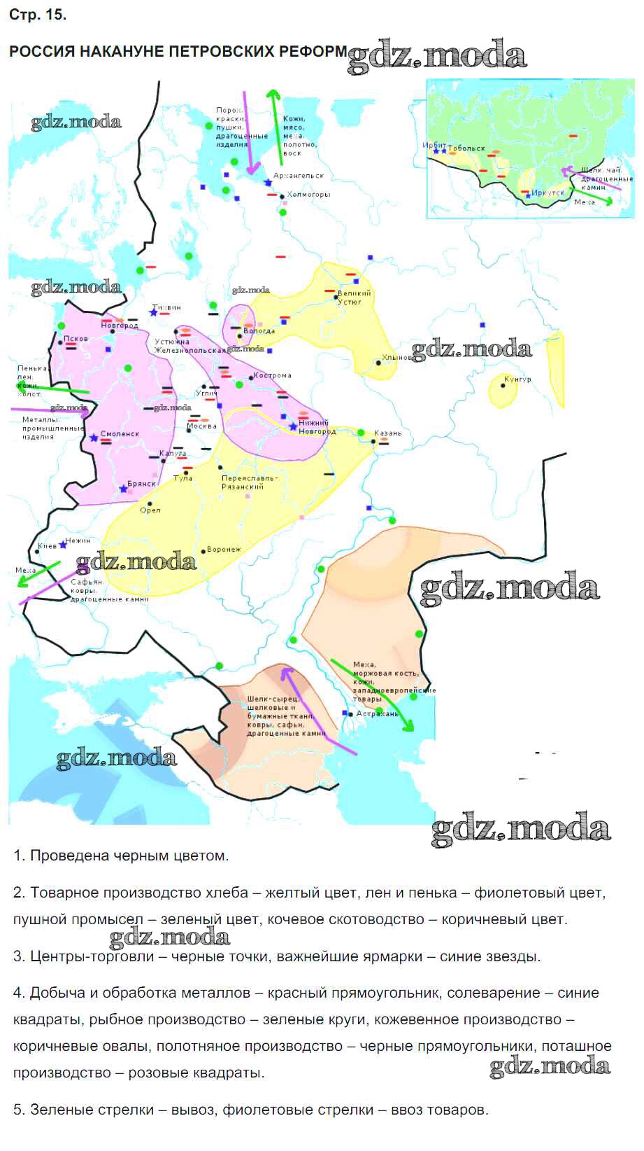 ГДЗ решение к заданию № 15 История 7 класс контурные карты Лукин П.В. Русское слово 2017 ФГОС бесплатно на гдз.мода!