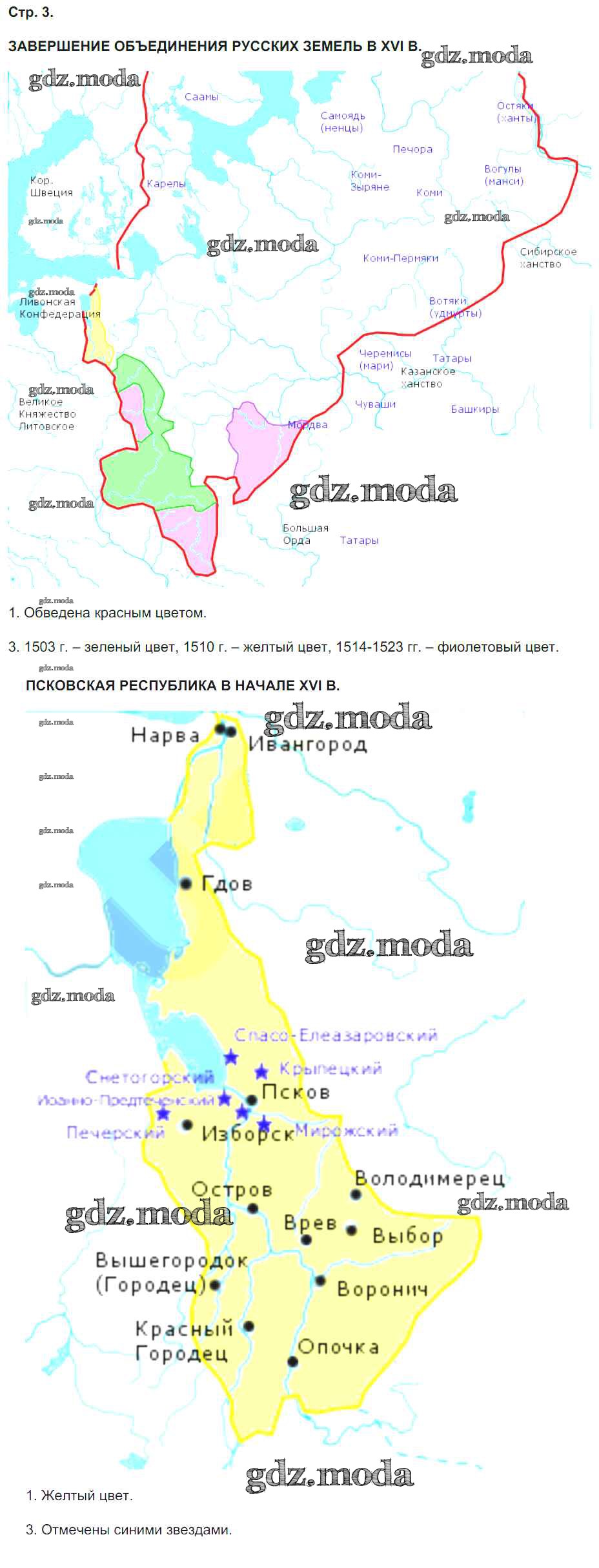 ГДЗ решение к заданию № 3 История 7 класс контурные карты Лукин П.В. Русское слово 2017 ФГОС бесплатно на гдз.мода!