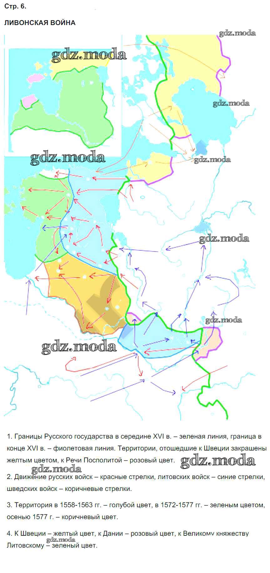 ГДЗ решение к заданию № 6 История 7 класс контурные карты Лукин П.В. Русское слово 2017 ФГОС бесплатно на гдз.мода!