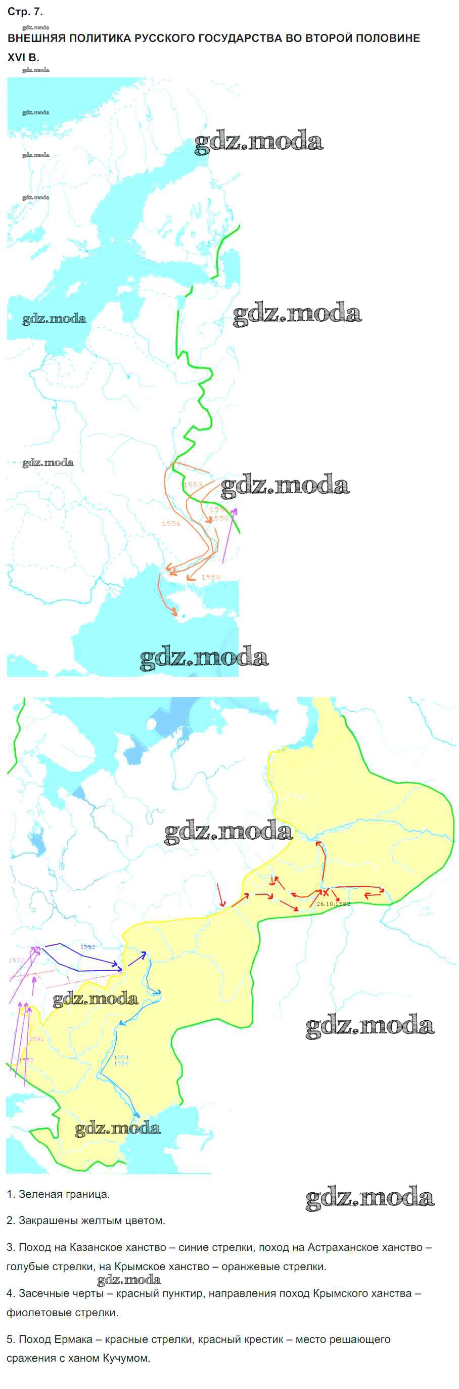 ГДЗ решение к заданию № 7 История 7 класс контурные карты Лукин П.В. Русское слово 2017 ФГОС бесплатно на гдз.мода!