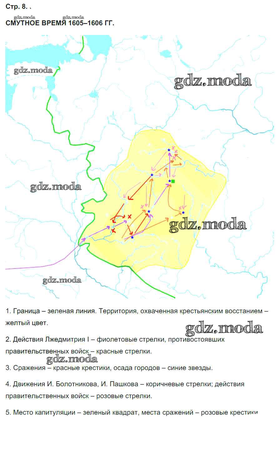 ГДЗ решение к заданию № 8 История 7 класс контурные карты Лукин П.В. Русское слово 2017 ФГОС бесплатно на гдз.мода!