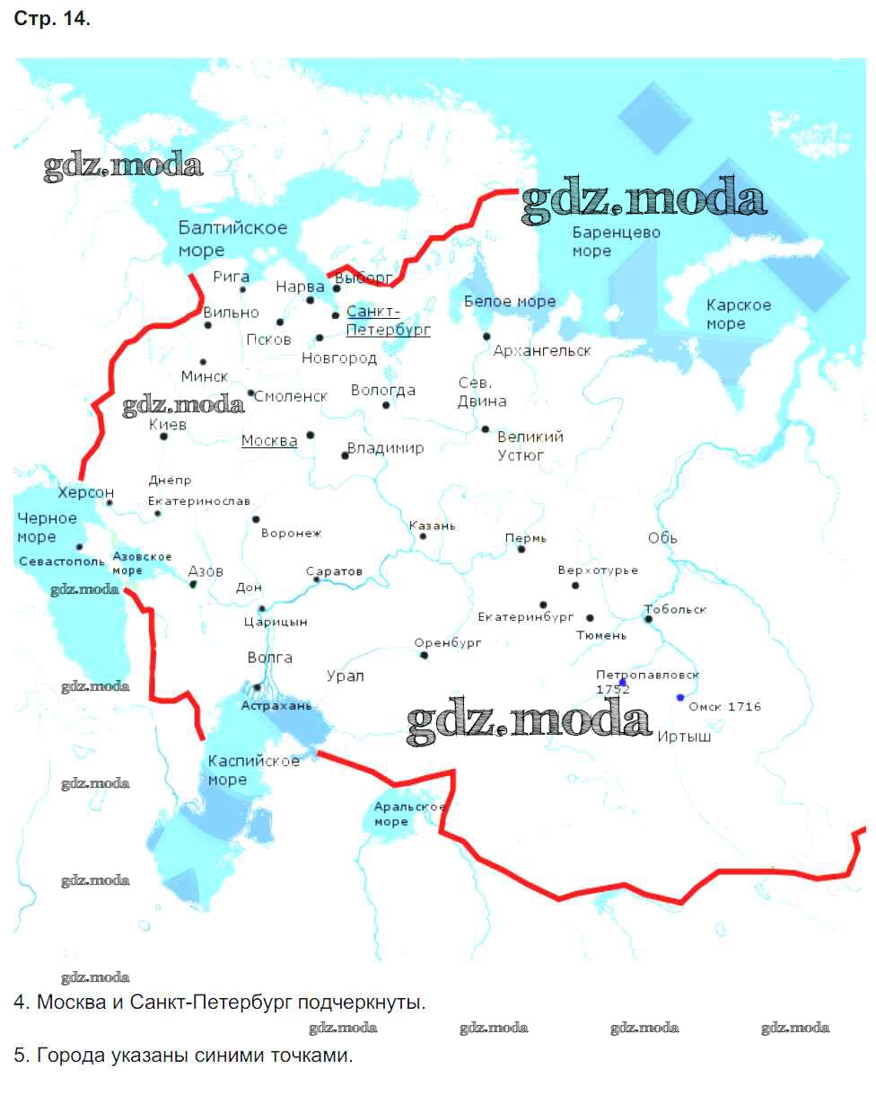 ГДЗ решение к заданию № 14 История 7 класс контурные карты Павлова Н.В. Экзамен 2014 ФГОС бесплатно на гдз.мода!