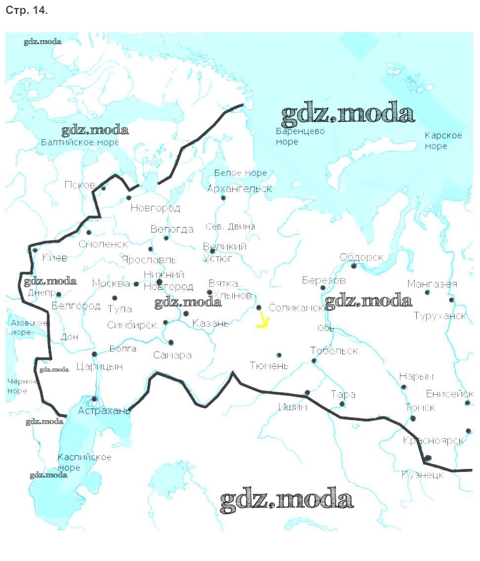 ГДЗ решение к заданию № 14 История 7 класс контурные карты Торкунов А.В. Экзамен 2020 ФГОС бесплатно на гдз.мода!
