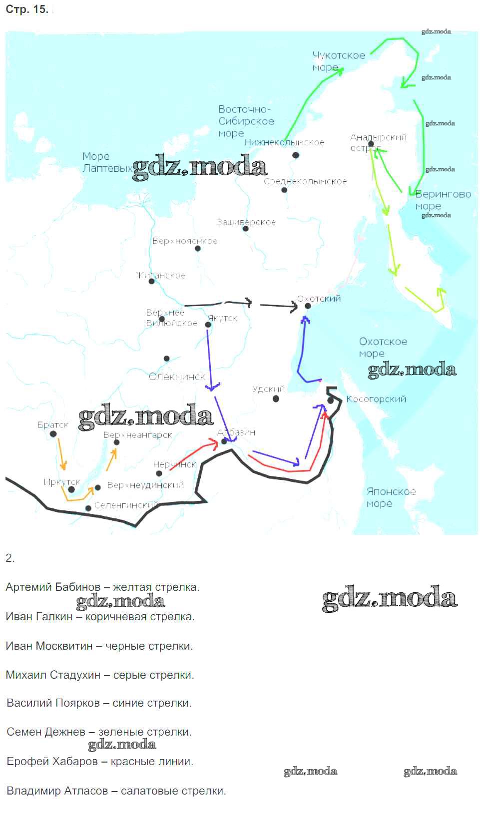 ГДЗ решение к заданию № 15 История 7 класс контурные карты Торкунов А.В. Экзамен 2020 ФГОС бесплатно на гдз.мода!