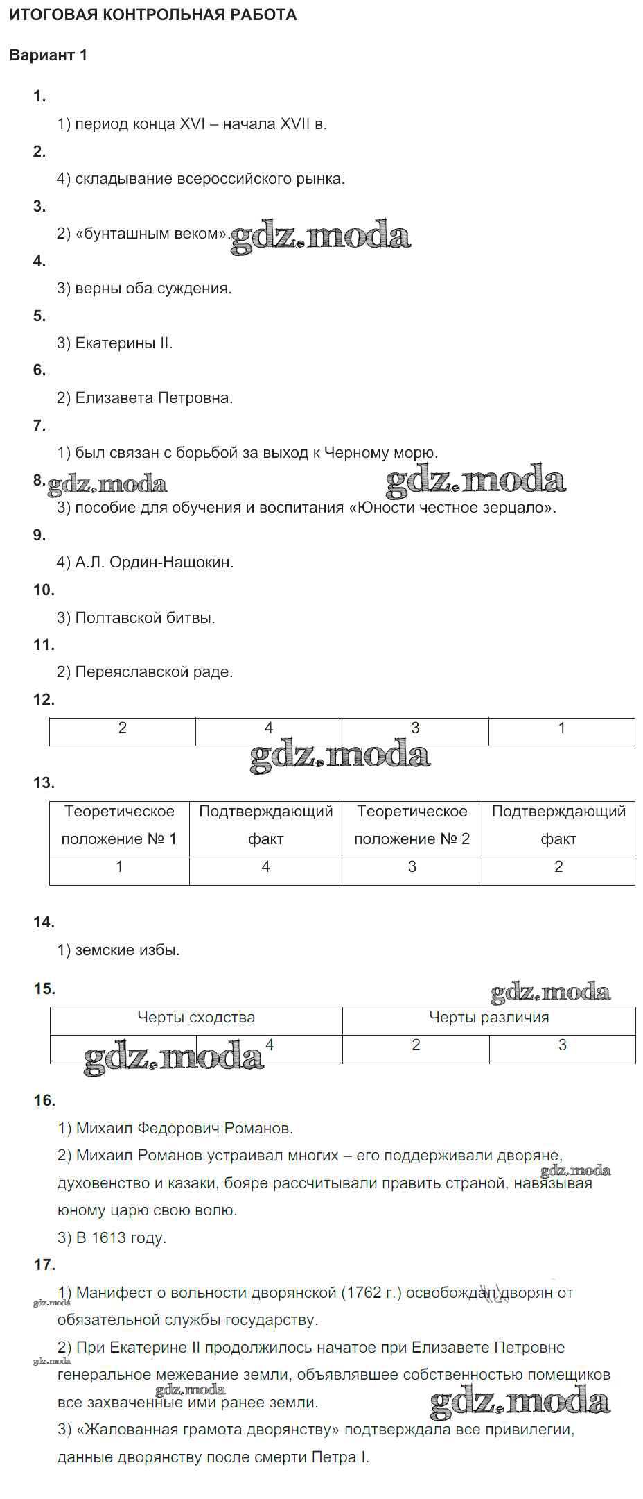 ГДЗ решение к заданию № Вариант 1 История 7 класс рабочая тетрадь. Тематический контроль Акиньшина О.Н. Национальное образование 2013 ФГОС бесплатно на гдз.мода!