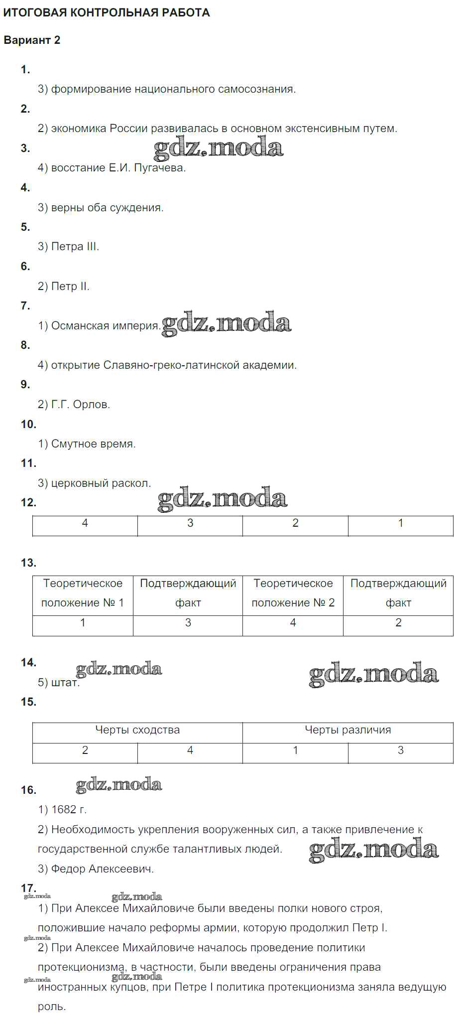 ГДЗ решение к заданию № Вариант 2 История 7 класс рабочая тетрадь. Тематический контроль Акиньшина О.Н. Национальное образование 2013 ФГОС бесплатно на гдз.мода!