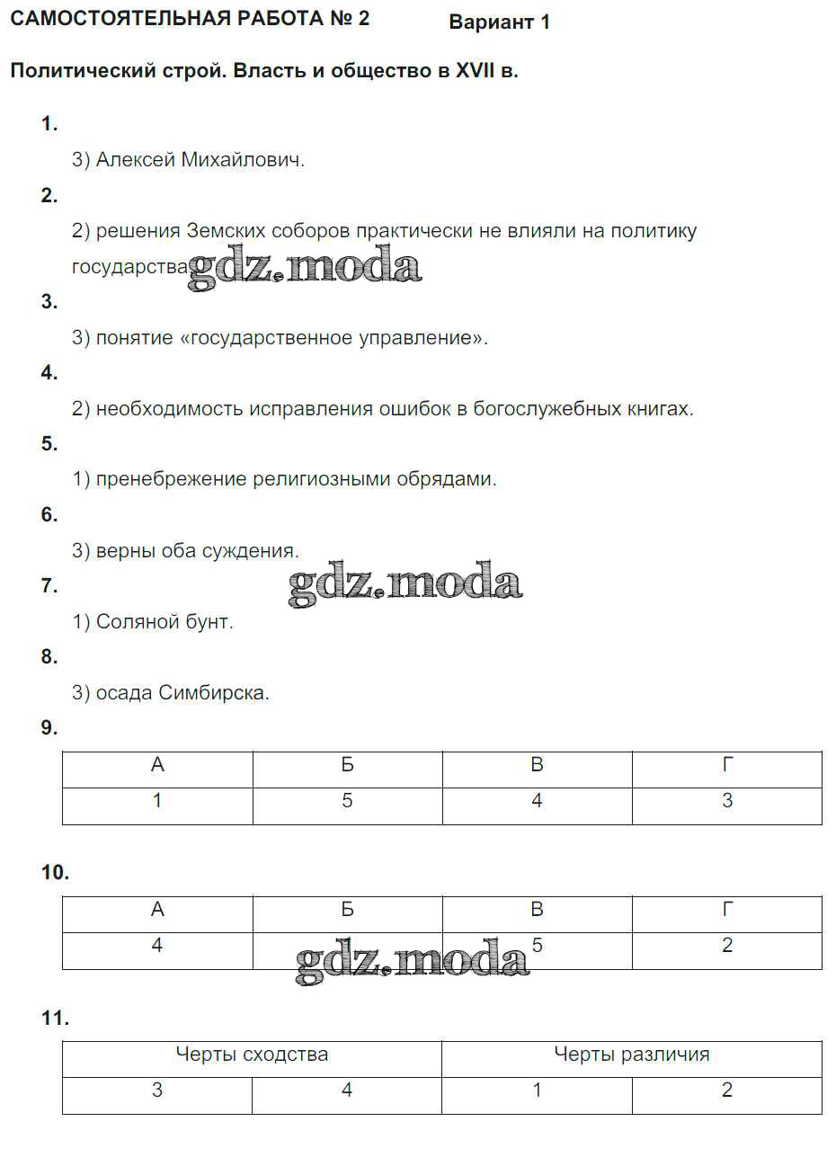 ГДЗ решение к заданию № Вариант 1 История 7 класс рабочая тетрадь. Тематический контроль Акиньшина О.Н. Национальное образование 2013 ФГОС бесплатно на гдз.мода!