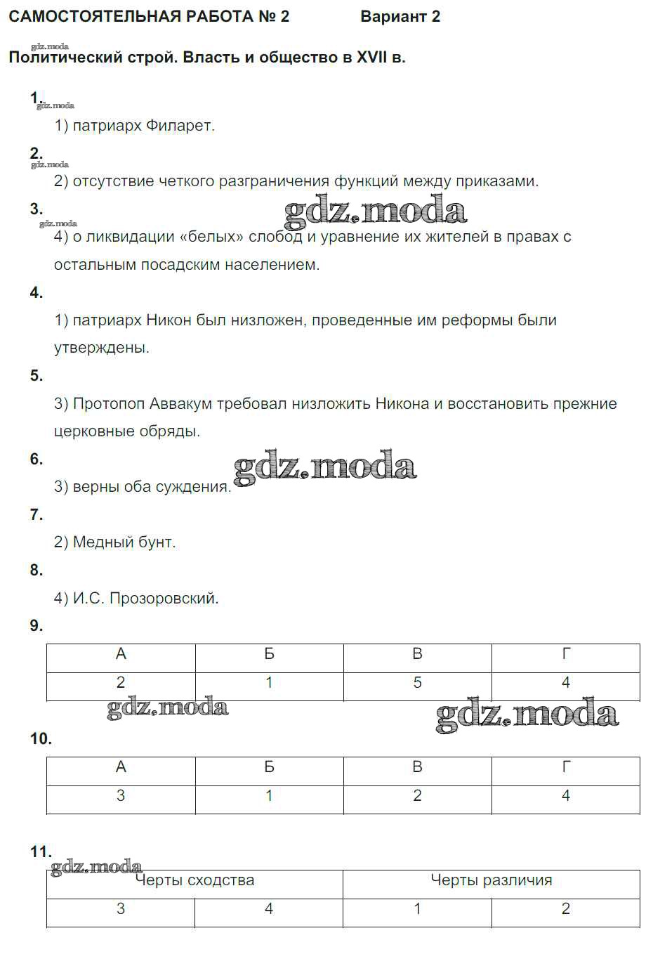 ГДЗ решение к заданию № Вариант 2 История 7 класс рабочая тетрадь. Тематический контроль Акиньшина О.Н. Национальное образование 2013 ФГОС бесплатно на гдз.мода!