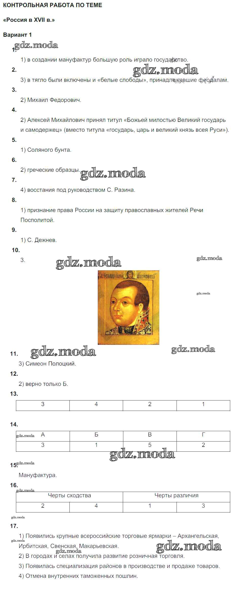 ГДЗ решение к заданию № Вариант 1 История 7 класс рабочая тетрадь. Тематический контроль Акиньшина О.Н. Национальное образование 2013 ФГОС бесплатно на гдз.мода!