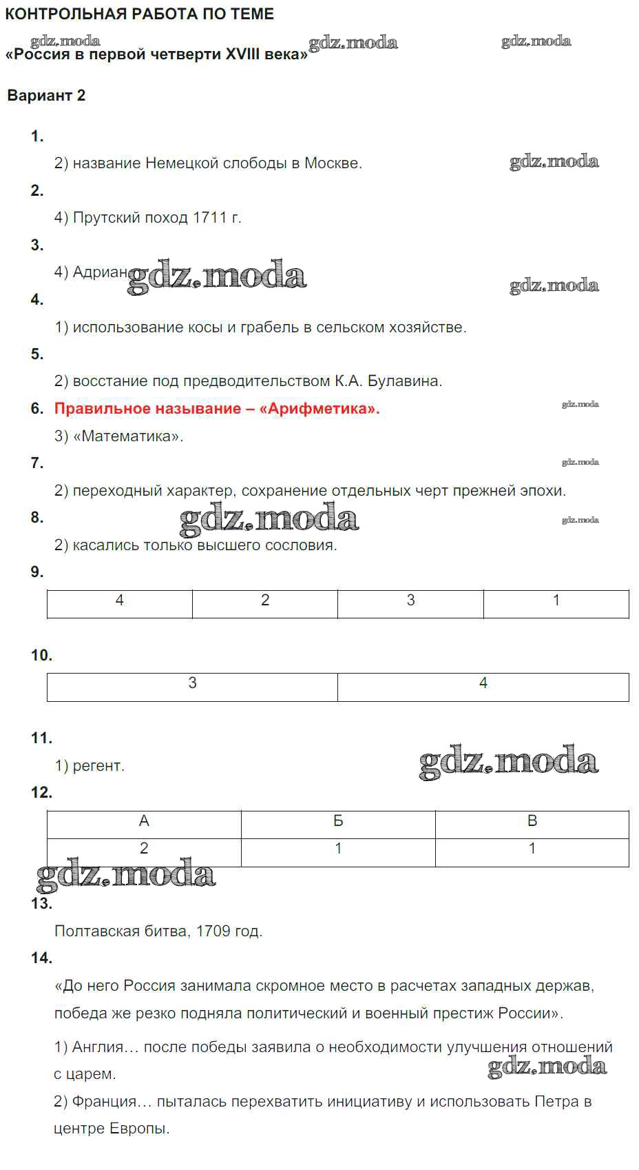 ГДЗ решение к заданию № Вариант 2 История 7 класс рабочая тетрадь. Тематический контроль Акиньшина О.Н. Национальное образование 2013 ФГОС бесплатно на гдз.мода!