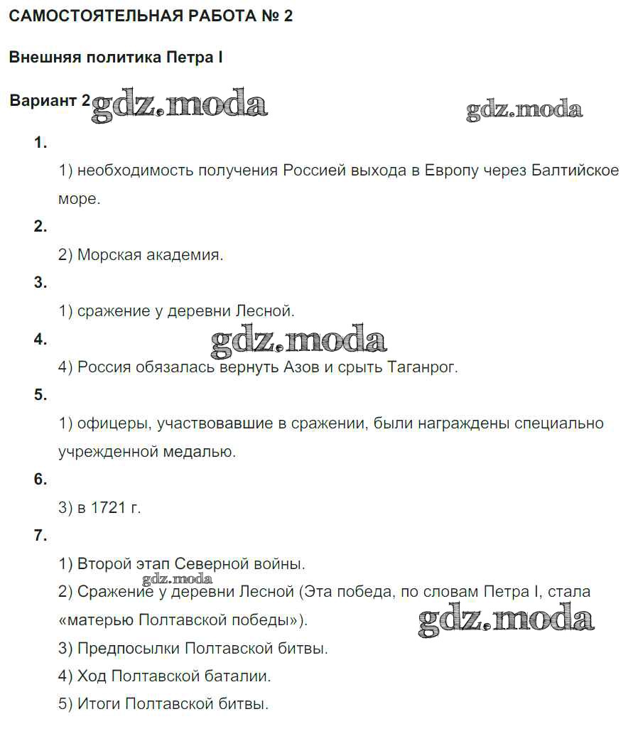ГДЗ решение к заданию № Вариант 2 История 7 класс рабочая тетрадь. Тематический контроль Акиньшина О.Н. Национальное образование 2013 ФГОС бесплатно на гдз.мода!