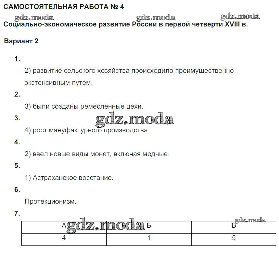 ГДЗ решение к заданию № Вариант 2 История 7 класс рабочая тетрадь. Тематический контроль Акиньшина О.Н. Национальное образование 2013 ФГОС бесплатно на гдз.мода!