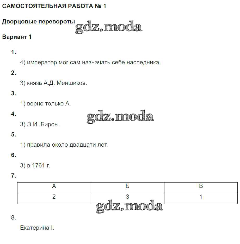 ГДЗ решение к заданию № Вариант 1 История 7 класс рабочая тетрадь. Тематический контроль Акиньшина О.Н. Национальное образование 2013 ФГОС бесплатно на гдз.мода!