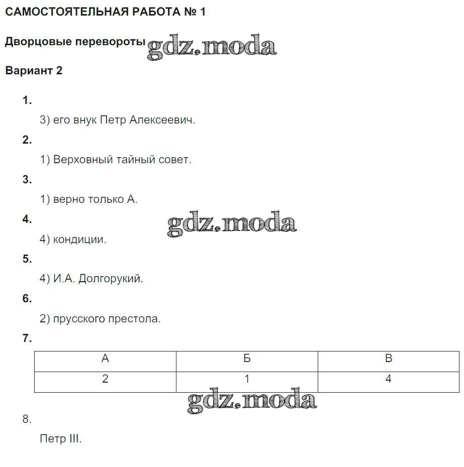 ГДЗ решение к заданию № Вариант 2 История 7 класс рабочая тетрадь. Тематический контроль Акиньшина О.Н. Национальное образование 2013 ФГОС бесплатно на гдз.мода!