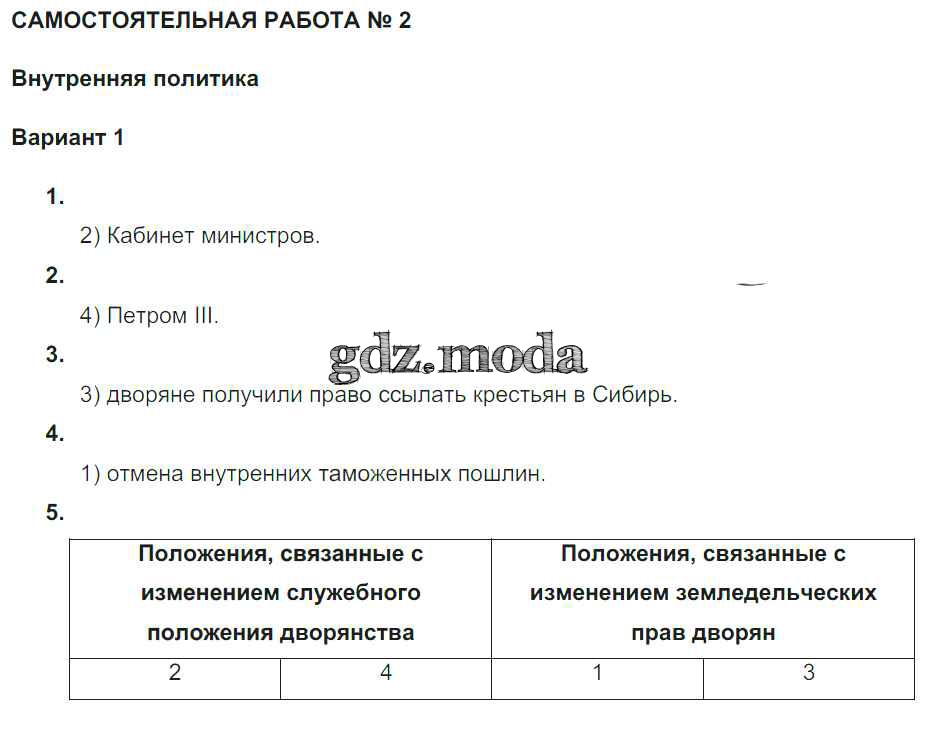 ГДЗ решение к заданию № Вариант 1 История 7 класс рабочая тетрадь. Тематический контроль Акиньшина О.Н. Национальное образование 2013 ФГОС бесплатно на гдз.мода!