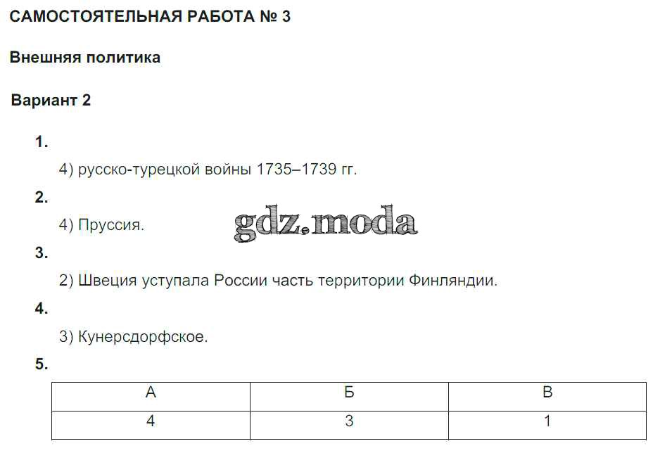 ГДЗ решение к заданию № Вариант 2 История 7 класс рабочая тетрадь. Тематический контроль Акиньшина О.Н. Национальное образование 2013 ФГОС бесплатно на гдз.мода!